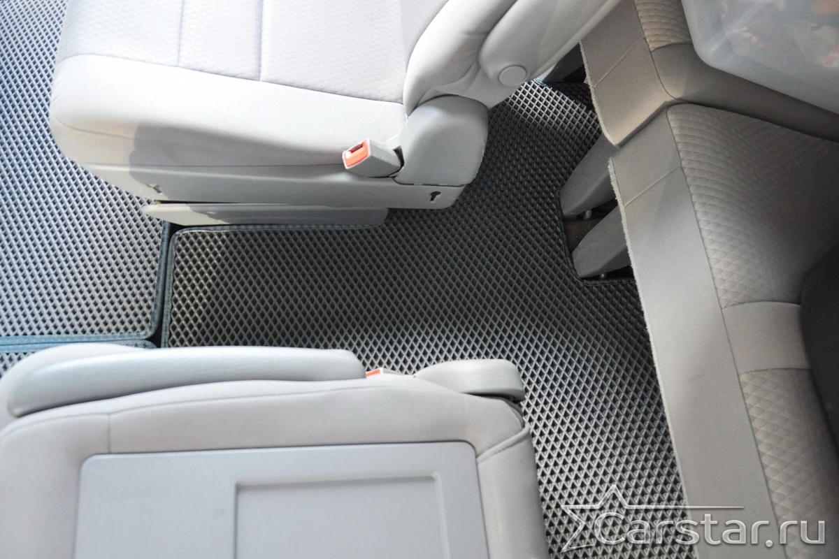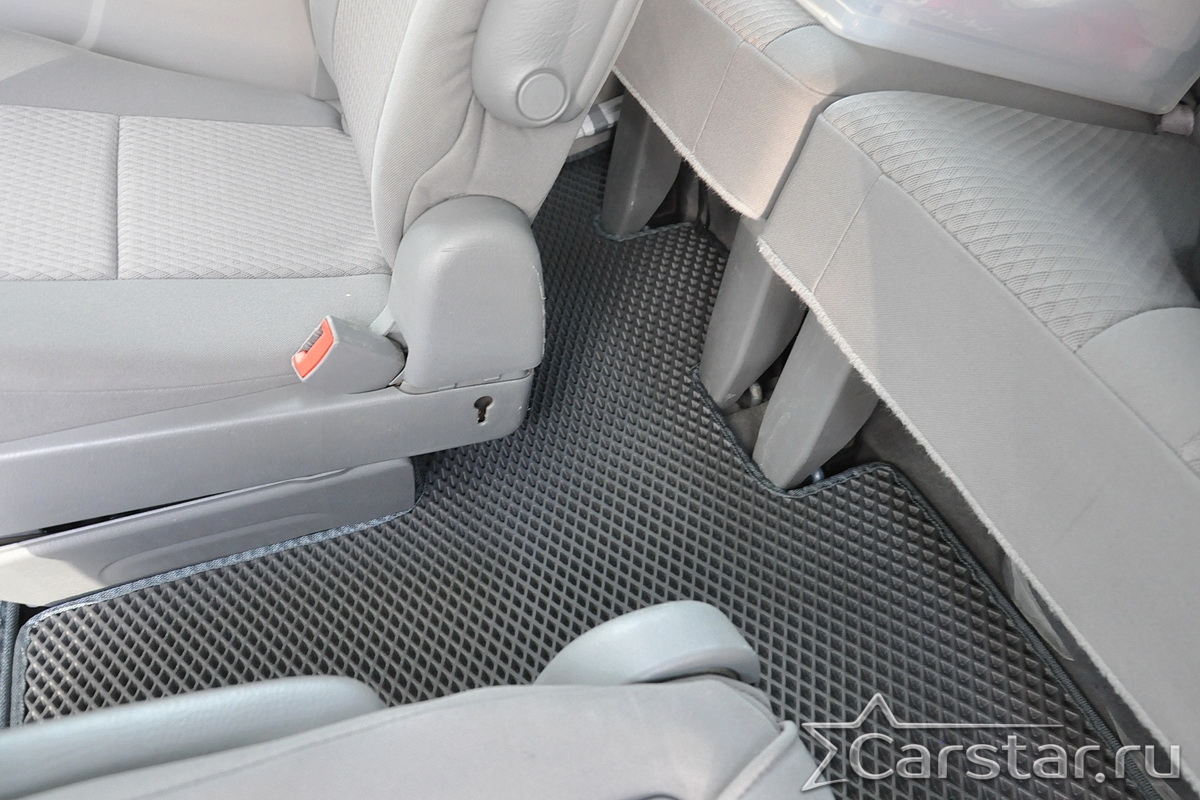 Автомобильные коврики EVA Dodge Grand Caravan V (2007-2020) 2 ряд: кресла 1+1 не убираются в пол – это долговечные, удобные и универсальные аксессуары, которые помогут надежно защитить салон и багажник вашего авто от пыли, грязи и влаги в любое время года.