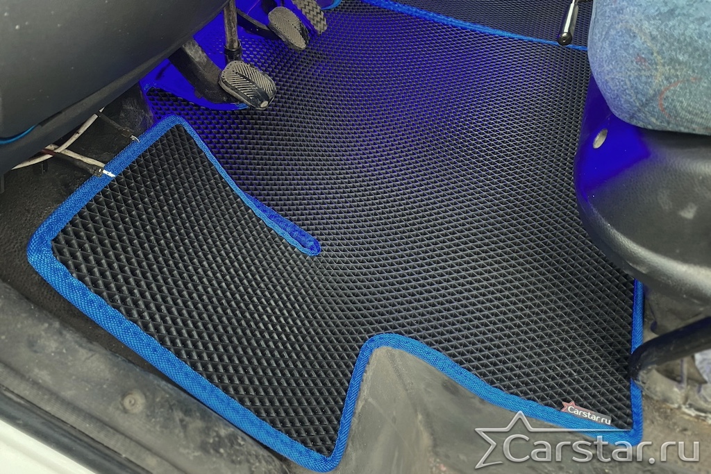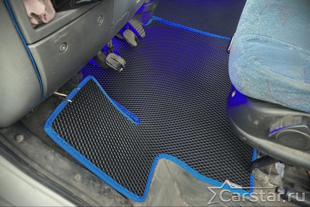 Толщина ковриков EVA составляет 10-12 мм. Глубина ячеек 7-8 мм. Такая толщина ковриков позволяет им служить довольно долго, не протираясь до 3 лет. А благодаря такой глубине ячеек коврик EVA площадью 1 кв.м. способен захватить около 3,5 л жидкости, сохраняя в чистоте вашу обувь и обивку салона.