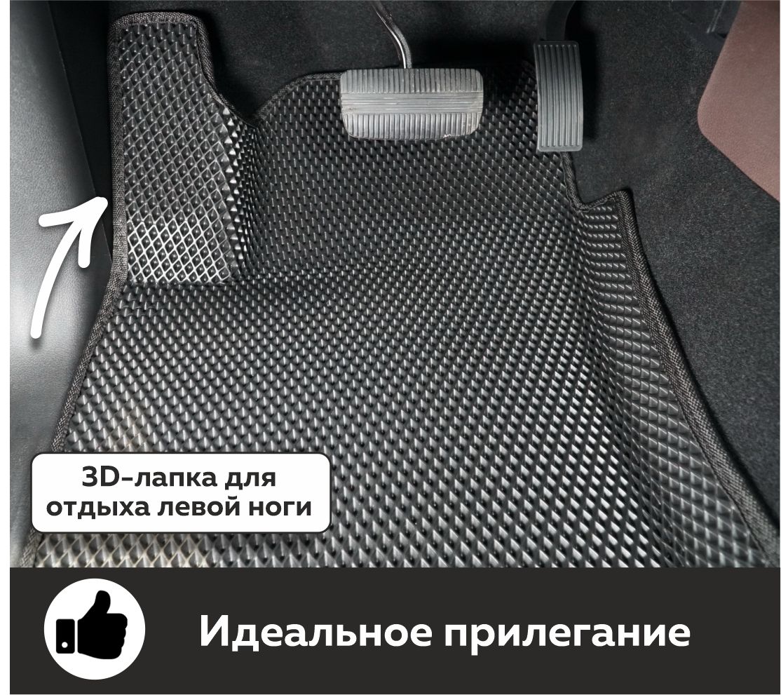 Коврики EVA надёжно крепятся с помощью оригинальных систем фиксации. Благодаря клипсам и липучке коврики защищены от смещений, что обеспечивает комфорт и безопасность вождения. Максимальное удобство также достигается точными, улучшенными лекалами для каждого автомобиля.