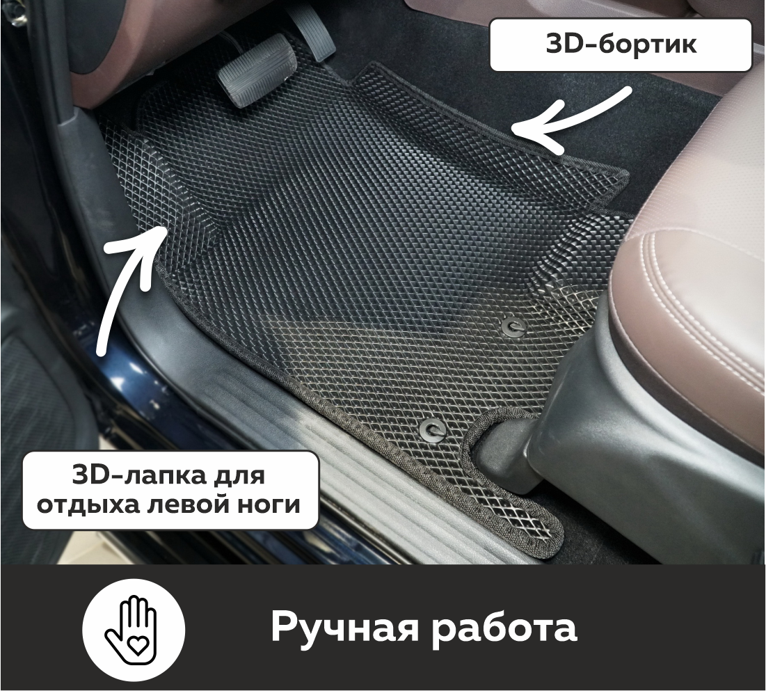 Автомобильные коврики EVA Oting Paladin (2023->) 3D EVA MAX – это долговечные, удобные и универсальные аксессуары, которые помогут надежно защитить салон и багажник вашего авто от пыли, грязи и влаги в любое время года.