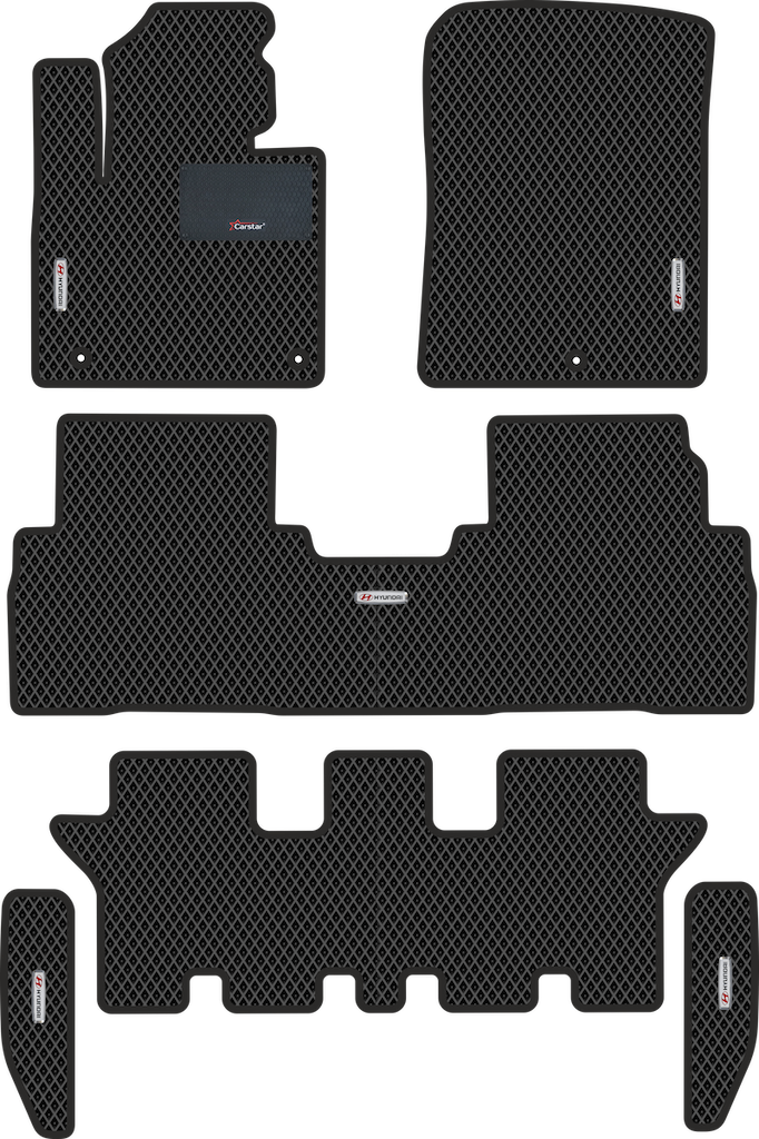 Текстильные автомобильные коврики Hyundai Santa Fe IV 3 ряда (2018-2020) – это классический аксессуар, который обеспечит салону автомобиля неизменную чистоту, порядок и уют. Компания Carstar предлагает изделия из качественного ковролина в сочетании с полипропиленовым основанием на шипах, такая комбинация делает их прочными и водонепроницаемыми.