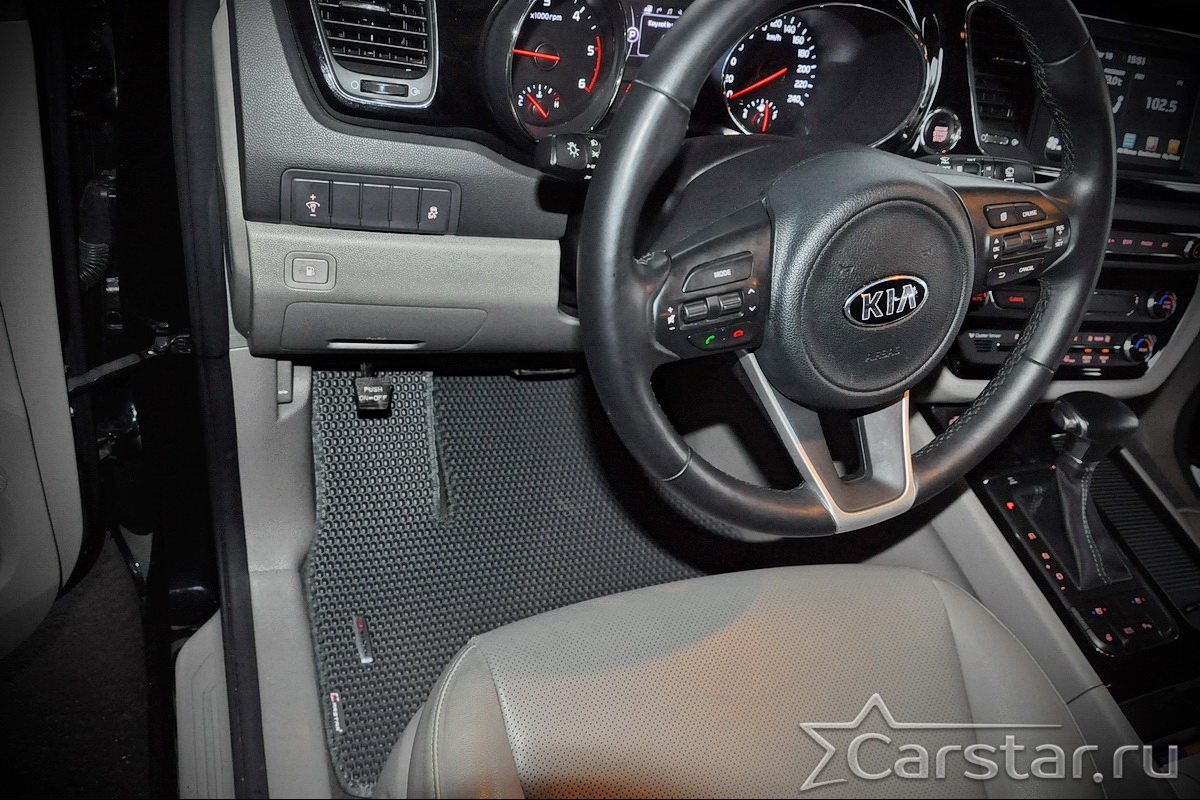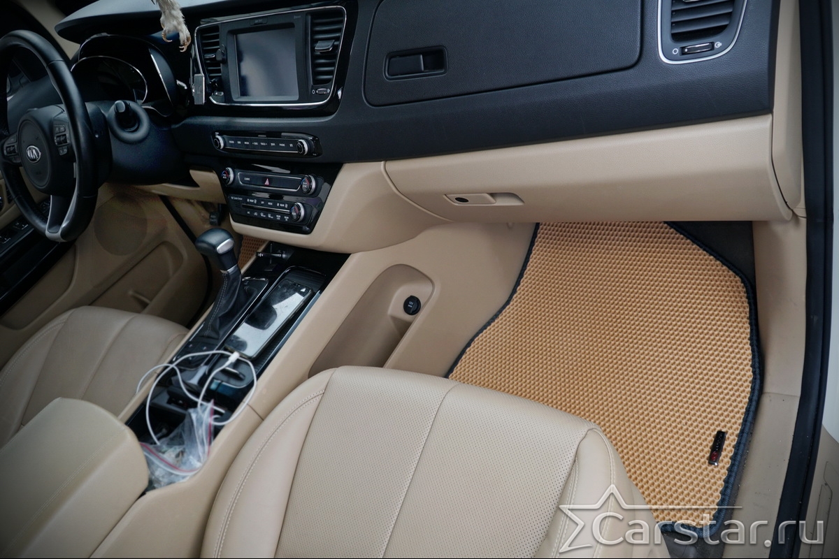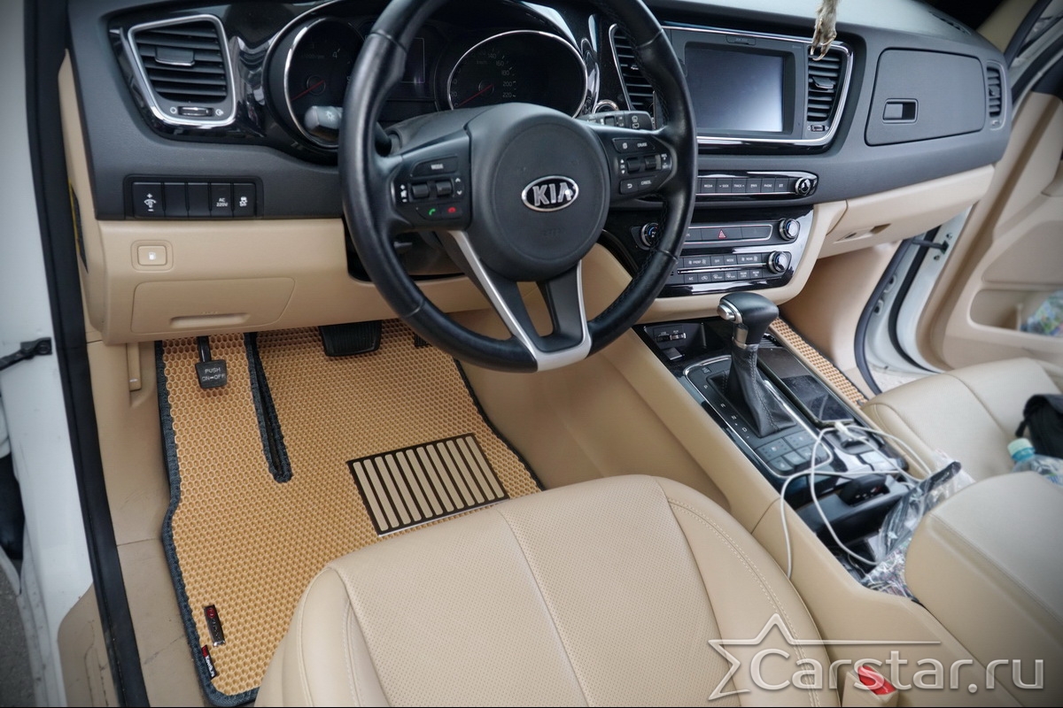 Текстильные автомобильные коврики Kia Carnival III (9мест) 2+2 без трансформеров (2014->) – это классический аксессуар, который обеспечит салону автомобиля неизменную чистоту, порядок и уют. Компания Carstar предлагает изделия из качественного ковролина в сочетании с полипропиленовым основанием на шипах, такая комбинация делает их прочными и водонепроницаемыми.