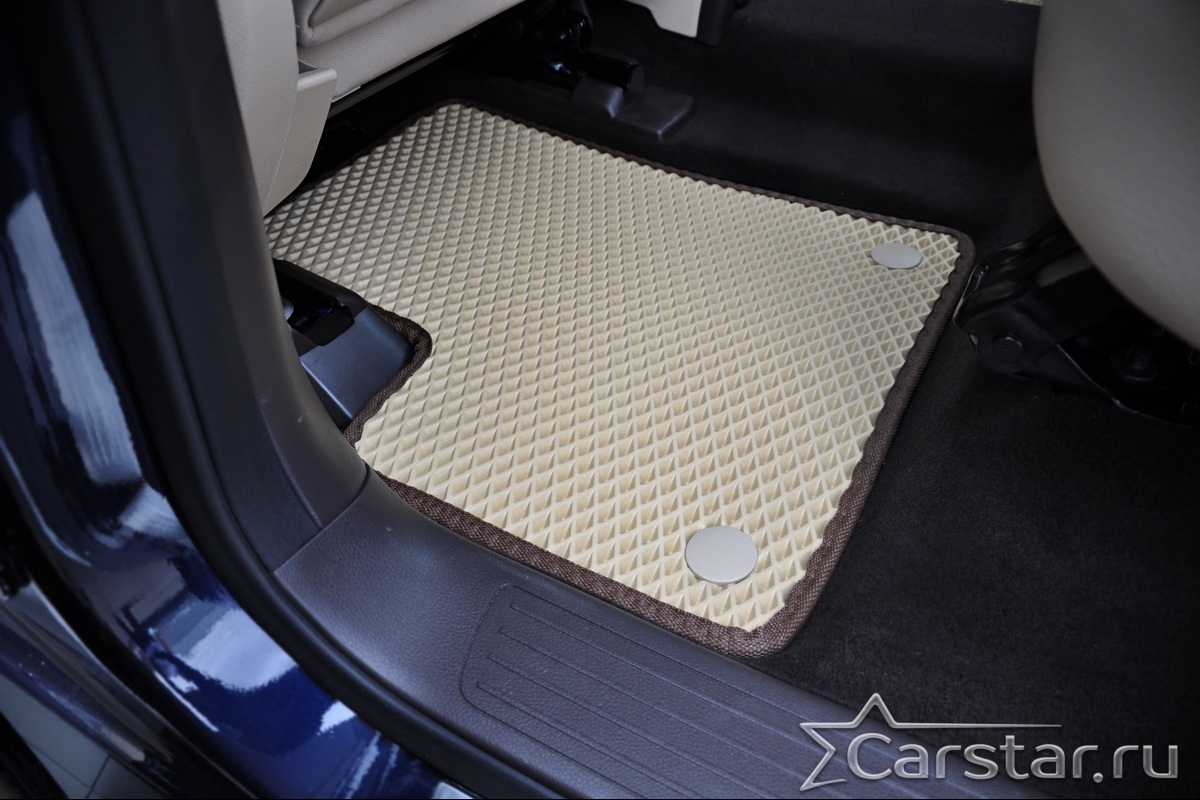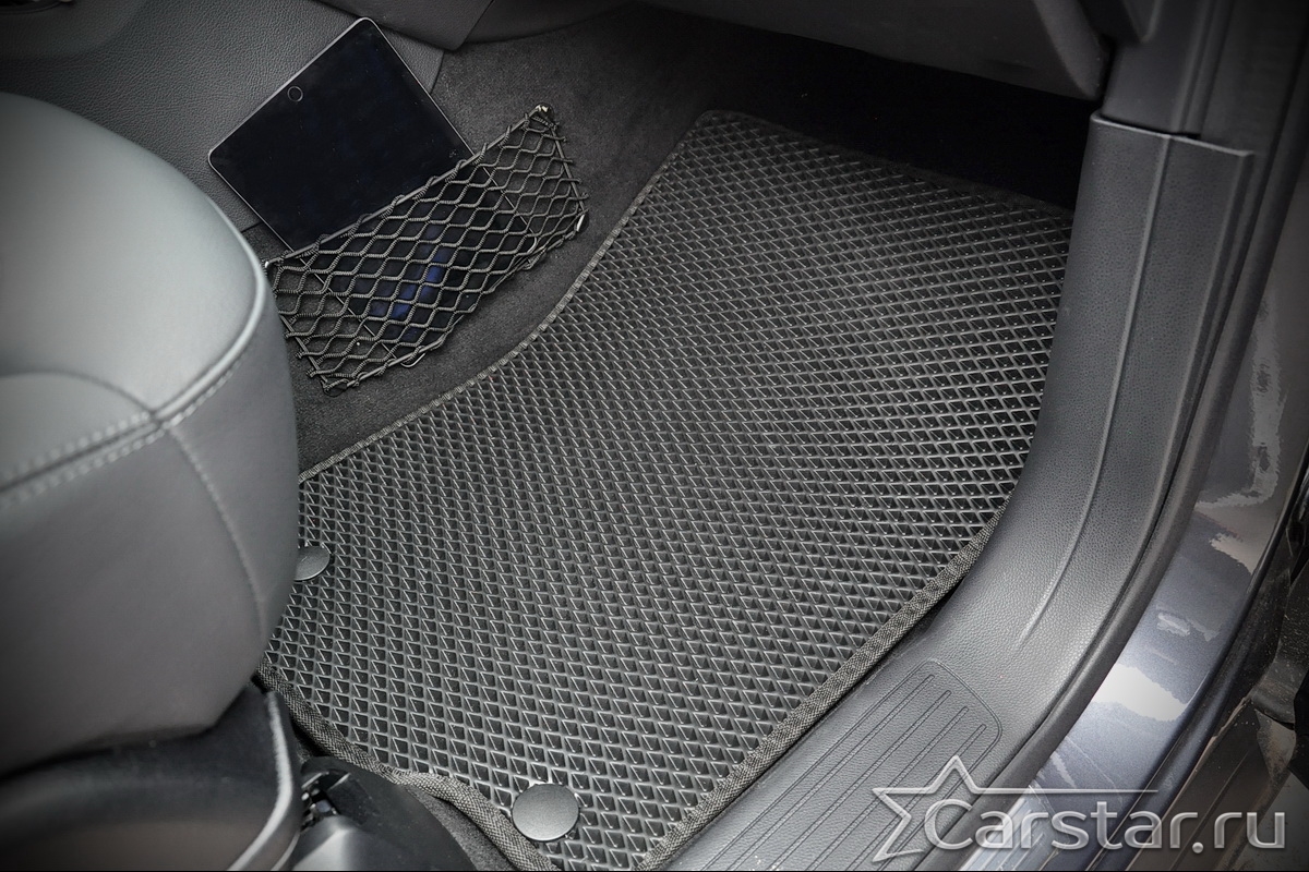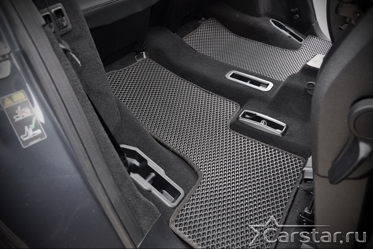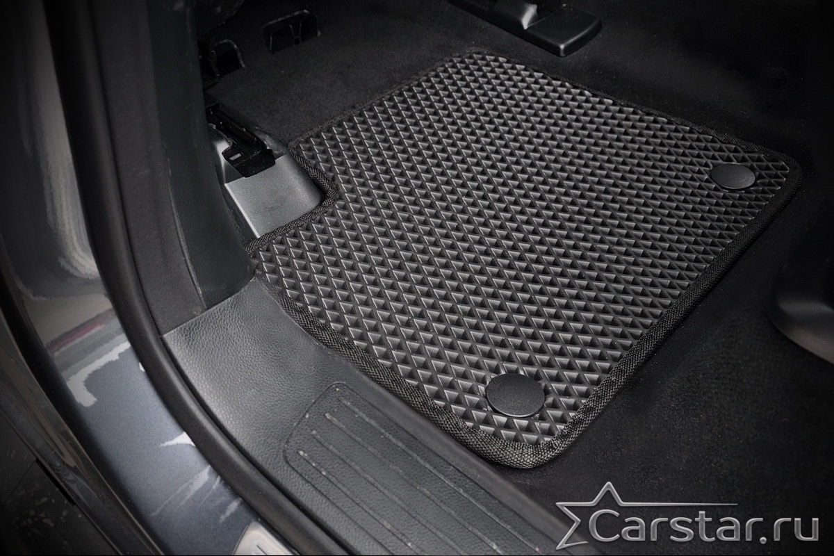 Текстильные коврики надёжно крепятся с помощью оригинальных систем фиксации. Обратная сторона имеет противоскользящее покрытие, что обеспечивает защиту от смещений и безопасность. Максимальное удобство достигается точными лекалами.