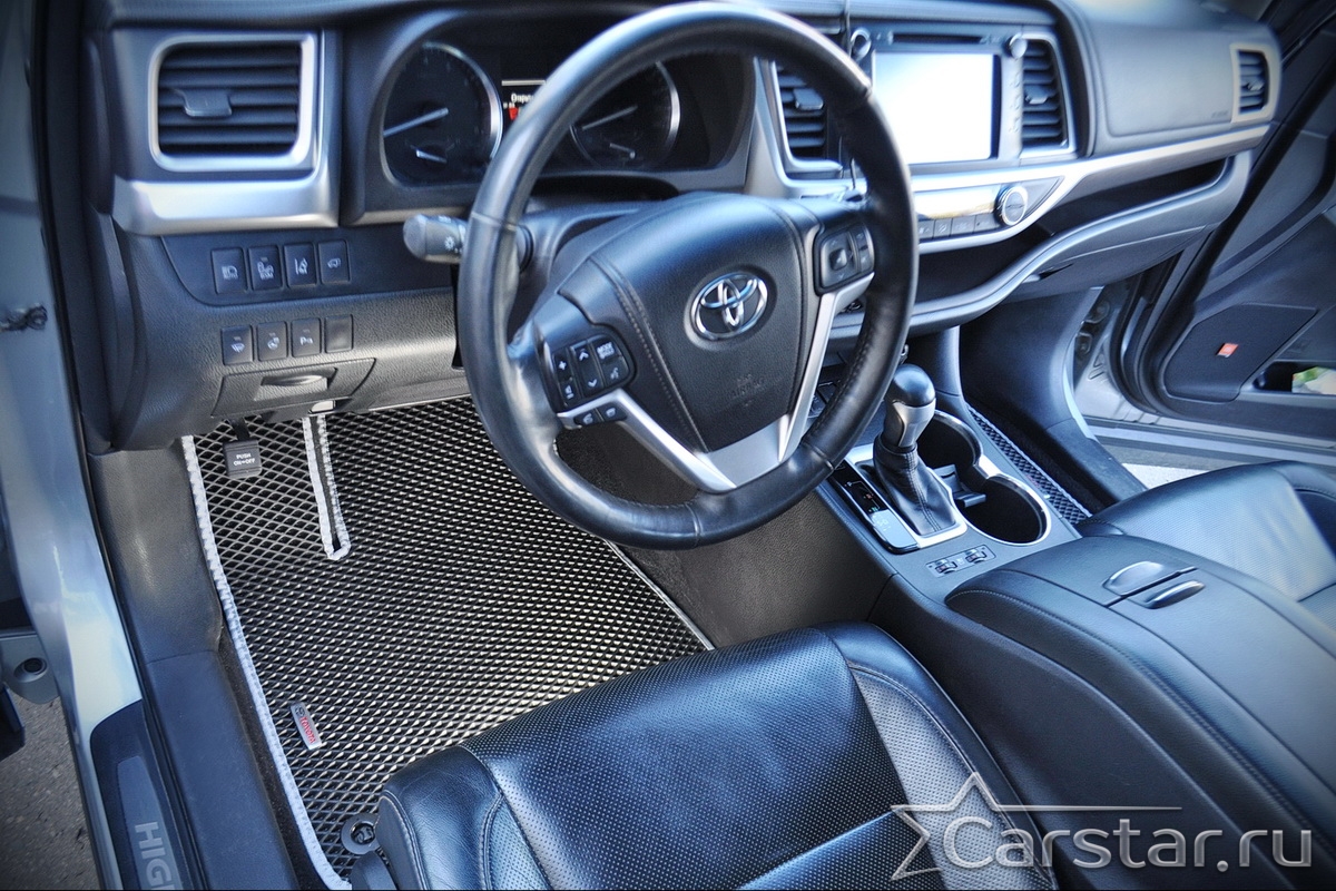 Текстильные автомобильные коврики Toyota Highlander III 3 ряда (2013-2019) – это классический аксессуар, который обеспечит салону автомобиля неизменную чистоту, порядок и уют. Компания Carstar предлагает изделия из качественного ковролина в сочетании с полипропиленовым основанием на шипах, такая комбинация делает их прочными и водонепроницаемыми.